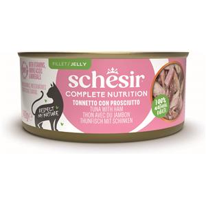 Schesir Filetti in Gelatina per Gatti - Tonnetto con Prosciutto, 6 x 140 g, Alimento Umido Completo