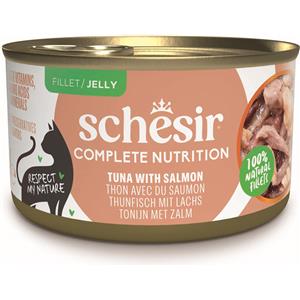 Schesir Tonnetto con Salmone in Gelatina - Alimento Umido Completo per Gatti, 6 x 85g, Con Vitamine Aggiunte, 100% Naturale