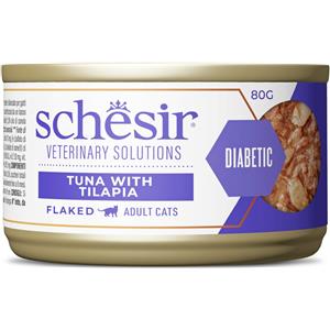 Schesir Veterinary Solutions Diabetic - Alimento Umido per Gatti con Tonnetto e Tilapia, 80 gr