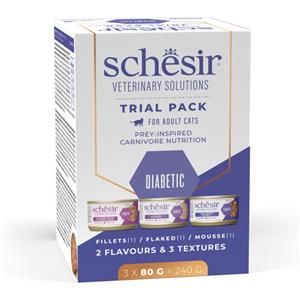 Schesir Veterinary Solution Diabetic - Alimento Umido per Gatti con Filetti di Pesce e Pollo, 3 o 8 Lattine da 80 gr