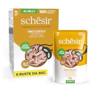 Schesir Complete Nutrition Filetti in gelatina 6 x 85 g in buste - Tonnetto con pollo