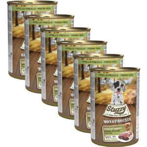 Stuzzy Cibo Umido Monoproteico per Cani Adulti al Vitello - 6 Lattine da 400g, Senza Glutine