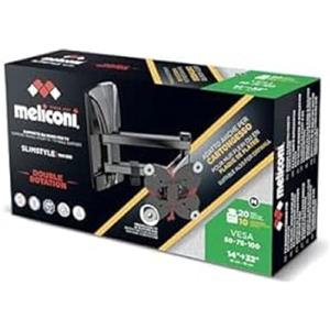 Meliconi SLIMSTYLE PLUS 100 SDR CG Supporto TV a Doppio Braccio per Televisori da 14" a 32" - Nero, Portata Max 20 Kg, VESA 50-75-100, Adatto per Cartongesso