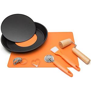 Guardini Set Crostata 8 Pezzi: Stampo in Acciaio Antiaderente, Tappetino in Silicone, Rullo in Legno e Accessori