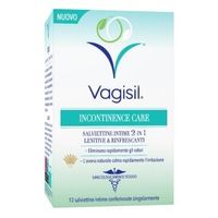 Vagisil Salviettine Intime Incontinence Care 2 in 1 Lenitive & Rinfrescanti 12 salviettine