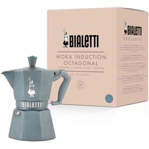 BIALETTI Moka Exclusive Octagonal Induction - Caffettiera Espresso 3 Tazze in Alluminio e Acciaio, Design Ottagonale Moderno, Compatibile con Gas e Induzione, Colore Silver Grey
