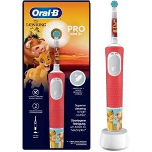Oral-B Pro Kids König der Löwen - Spazzolino elettrico per bambini dai 3 anni in su, con modalità Sensitiv+ per la cura dei denti, setole extra morbide, 1 testina di ricambio, 4 adesivi