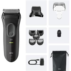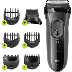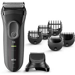 Braun Series 3 3000BT Rasoio Elettrico 3 in 1 con 5 Pettini, Wet&Dry, Nero/Grigio