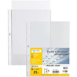 SEI Rota Buste Forate Atla - Medium - 22 x 30 cm - Trasparente - Polipropilene (PP) Buccia d'Arancia - Conf. 25 Pezzi