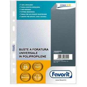 Favorit Buste a Foratura Universale Linear 15x21 cm - 25 Buste in Polipropilene Trasparente