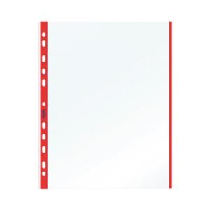 Favorit Buste Forate A4 con Banda Rossa - 21 x 29,7 cm - Polipropilene - Confezione da 10 Pezzi - Finitura Buccia d'Arancia