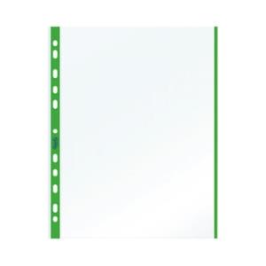 Favorit Buste Forate A4 con Banda Verde - Polipropilene Trasparente Buccia d'Arancia - 21 x 29,7 cm - Confezione da 10 Pezzi