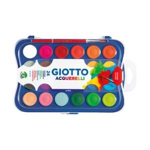GIOTTO Acquerelli Pastiglie Ø 30 mm - Set da 24 Colori Assortiti 1 Pennello - Colori Luminosi e Coprenti
