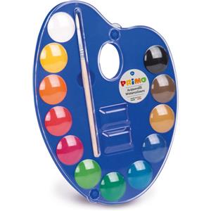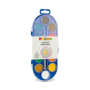 Primo Acquerelli Primo - Pastiglie Ø 25 mm, 12 Colori Assortiti con Tavolozza e Pennello