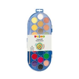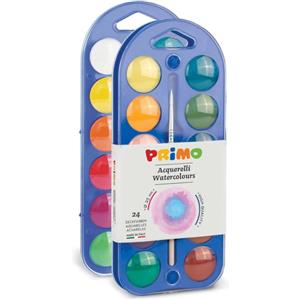 Primo Acquerelli Ø 25 mm - 24 Colori Assortiti in Scatola con Pennello e Coperchio Tavolozza