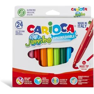 Carioca Pennarelli Jumbo Assortiti 24 pz - Punta Maxi 6 mm, Corpo Ottagonale, Superlavabili e Dermatologicamente Testati