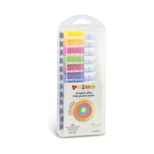 PRIMO Tempera in tubetto da 12 ml - Scatola da 12 pezzi (4 fluo e 8 metallizzati) Pennello - Colori per Bambini 3 Anni