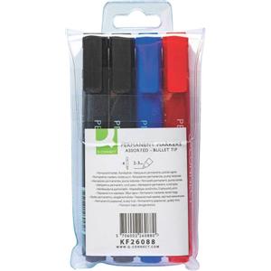 Q-Connect Marcatore Permanente Punta Tonda 2-3 mm - Astuccio con 4 Colori Assortiti (2 Nero, 1 Rosso, 1 Blu)