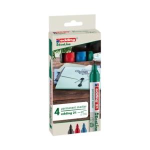 Edding Ecoline 21 - Marcatore Permanente con Punta Conica 1,5-3mm, Colori Assortiti (Nero, Blu, Verde, Rosso) - Confezione da 4 Pezzi