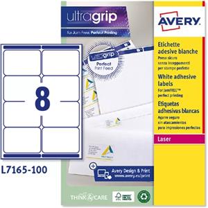 Avery L7165-100 Etichette Adesive Bianche A4 - 99,1 x 67,7 mm - 8 Etichette per Foglio - 100 Fogli - Carta Permanente con Angoli Arrotondati
