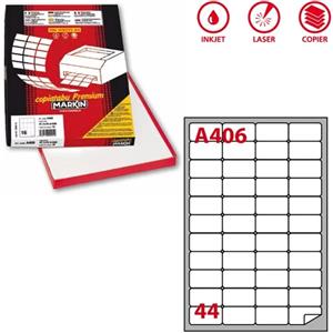 Markin Etichette Adesive Bianche A4 - 47,5x25,5 mm - 44 Etichette per Foglio - Conf. 100 Fogli - 4400 Etichette Totali - Angoli Arrotondati