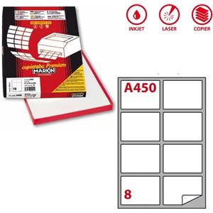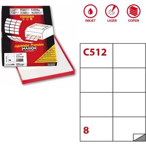 Markin Etichette Adesive Bianche C/512 - 105 x 74,25 mm - 8 Etichette per Foglio - 800 Etichette Totali - Scatola da 100 Fogli A4 - Adesivo Permanente