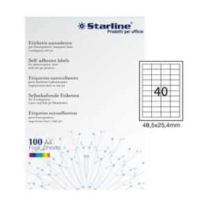 STARLINE Etichette Adesive Bianche Permanenti A4 - 48,5x25,4mm - 40 Etichette per Foglio - Confezione da 100 Fogli