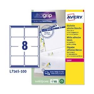 Avery L7165-100 Etichette Adesive Bianche A4 - 99,1 x 67,7 mm - 8 Etichette per Foglio - 100 Fogli - Carta Permanente con Angoli Arrotondati