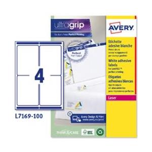 Avery Etichette Bianche Adesive Ultragrip™ 99,1x139 mm - 4 Etichette per Foglio - Conf. 100 Fogli