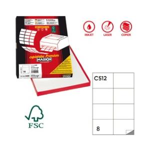 Markin Etichette Adesive Bianche C/512 - 105 x 74,25 mm - 8 Etichette per Foglio - 800 Etichette Totali - Scatola da 100 Fogli A4 - Adesivo Permanente
