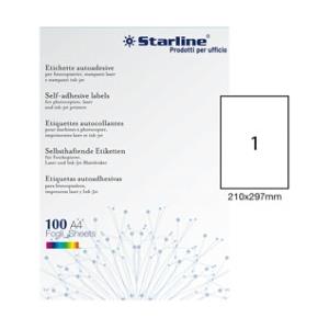 STARLINE Etichette Adesive Bianche A4 210x297mm - Adesivo Permanente - Confezione da 100 Fogli