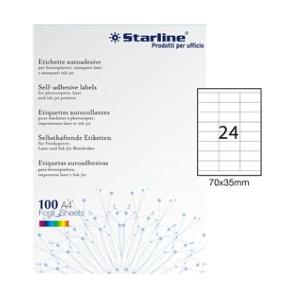 STARLINE Etichette Adesive Bianche Permanenti 70x35mm - 100 Fogli A4 con 24 Etichette per Foglio