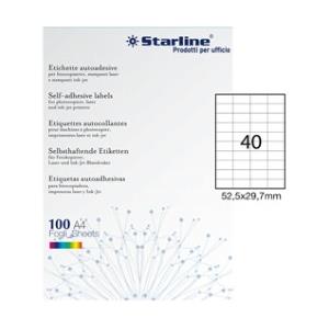 STARLINE Etichette Adesive Bianche Permanenti A4 - 52,5x29,7mm - 100 Fogli con 40 Etichette per Foglio