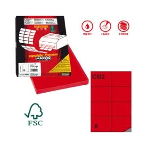 Markin Etichetta Adesiva C/512 - 105 x 74,25 mm - Rosso - 8 Etichette per Foglio - Scatola da 100 Fogli A4