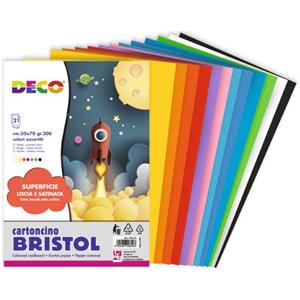 DECO Cartoncino Colorato Bristol 200 gr - 21 Fogli Assortiti 35x50 cm con Superficie Liscia-Satinata