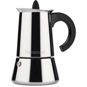 Barazzoni Caffettiera Inox 4 Tazze - Certificata dall'Accademia Italiana Maestri del Caffè, Adatta all'Induzione