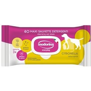 Inodorina Salviettine Detergenti Citronella - 40 Pezzi per Cani e Gatti, Umidificate e Protettive