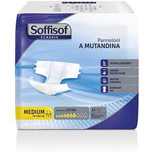 Soffisof Classic Pannoloni A Mutandina Extra, Taglia Media, Assorbenza 7/10, Confezione da 15 Pezzi