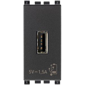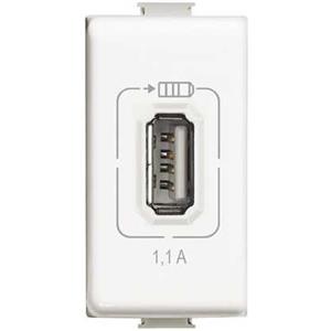 Bticino Living Now Caricatore USB Tipo A 1,1A - Tensione 5Vdc, Alimentazione Diretta 110-230V, 1 Modulo