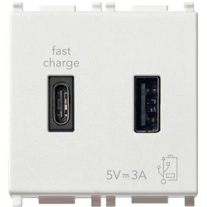 Vimar 14295.AC Plana Presa USB Bianco - 1 Uscita USB Tipo A e 1 Uscita USB Tipo C, 5V 3A, Fast Charge