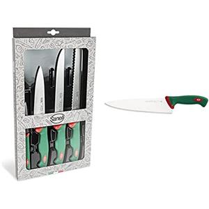Sanelli 909604 Confezione Coltelli Chef 4 Pezzi & Premana Professional Coltello Trinciante, Acciaio, Verde/Rosso, 25 Cm