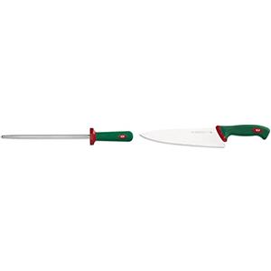 Sanelli Premana Professional Acciaino, Acciaio Inossidabile, Verde/Rosso, 30 Cm & Premana Professional Coltello Trinciante, Acciaio, Verde/Rosso, 25 Cm