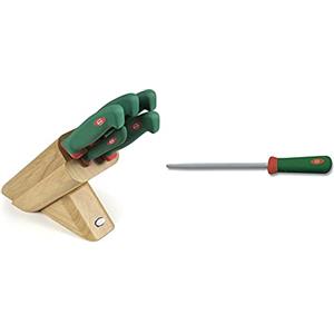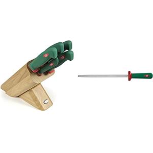 Sanelli 931605 Ceppo Coltelli Leck, Legno, Verde/Rosso, 5 unità & Premana Professional Acciaino, Acciaio Inossidabile, Verde/Rosso, 22 cm