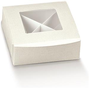 Formoso Scatola Confetti Pratica in Seta Bianca con Finestra Trasparente e Separatori - 10 Pezzi