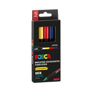 Uni Posca Set Completo di 5 Pennarelli Extra-Fini 0.7mm - Colori Assortiti per Bambini e Artisti, Inchiostro Acrilico Sicuro e Resistente