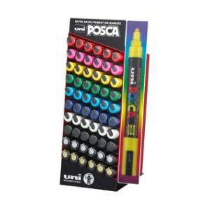 Uni Posca Espositore da banco con 60 Marcatori a Tempera Assortiti - Punta PC5M, Inchiostro Pigmentato Ultra Denso