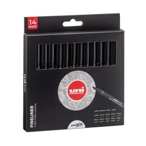 Uni Mitsubishi - Astuccio di 14 Pennarelli Indelebili a Punta Fine Nera per Disegno Tecnico e Grafico