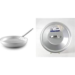 Pentole Agnelli Alma111B45 Padella Alta Per Saltare, Manico Tubolare, Alluminio Professionale, 45 Cm & Alma12945 Coperchio Rotondo Pesante Con Ponticello, Alluminio, 45 Cm