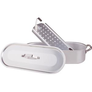Pentole Agnelli Pesciera 70 cm in Alluminio Professionale 3mm con Maniglie Inox, Griglia e Coperchio