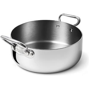 Pentole Agnelli Casseruola Bassa in Acciaio Inossidabile con 2 Maniglie, Ø 45 cm, Compatibile con Induzione e Gas in Tavola e Cucina